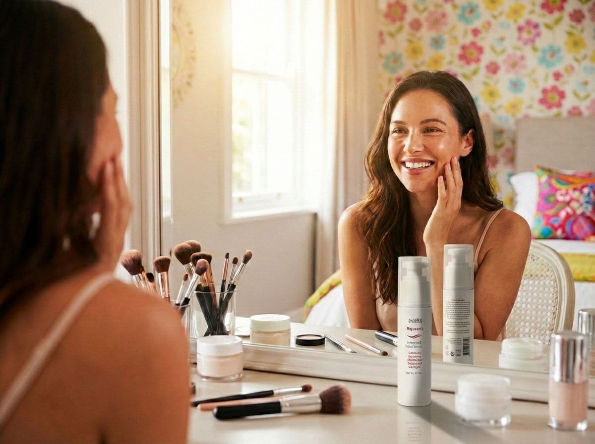 Exfoliation from using Rejuvenis removes dead skin cells which build up on the skin surface, revealing a fresher smoother skin underneath, This also stimulates the natural skin renewal process, encouraging new skin cells to the surface faster, improving skin texture, making your complexion brighter, more radiant and more youthful. Exfoliation will also help clear clogged pores and help reduce the occurrence of acne and blackheads. Removing old dead skin, also allows Rejuvenis moisturizing serum to penetrate for more effectiveness,